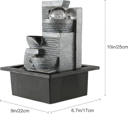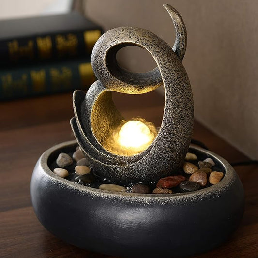 Living White Light LED Indoor Fountain, Living Room Desk Fountain Decoration with Lighting, Resin, 17 x 22 x 25 cm