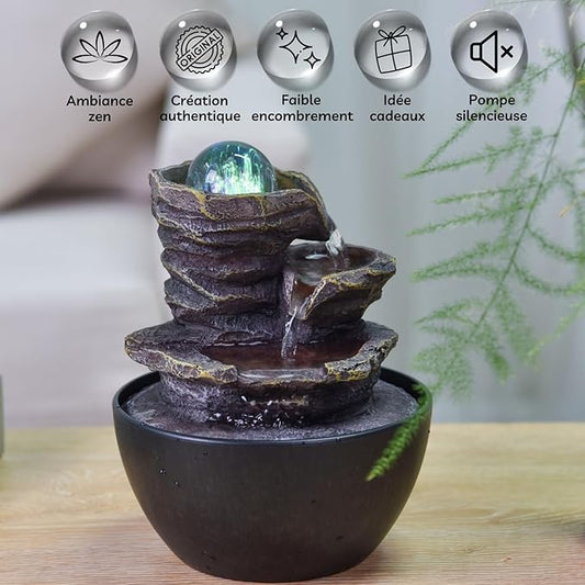 Zen Light SCFR22-L12 Zen Cascade Closed Circuit Table Fountain, Relaxing Bright Colourful LED, 18 cm Height, Chestnut